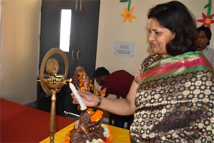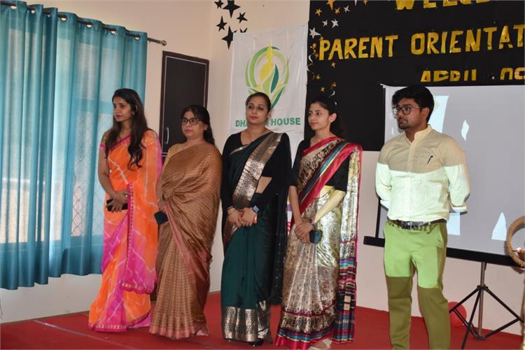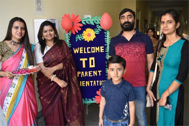 Parents were welcomed with the Tilak as per Hindu custom, followed by registration process. Then they were escorted to the Venue on 2nd Floor. After welcome address by School Coordinator Ms Yogita Nagpal, orientation started with Lamp lighting by School principal Ms Geeta Dagar, Vice Principal Ms Preeti Dagar and Ganesh Vandana by Music teacher Mr Sanjay Pathak.